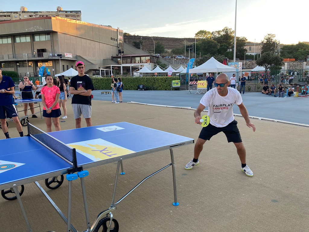 Con il TTX neppure il vento crea problemi. E constatarlo in una città dove le correnti d’aria si fanno sentire molto spesso vuol dire che l’esperimento ha funzionato. Gli alti indici di gradimento testimoniano il gran successo del primo Ping Pong Fest in terra sarda che dal pomeriggio alla sera di sabato scorso ha galvanizzato donne e uomini di età e passioni multiformi. Era facilmente intuibile che dieci tavoli schierati elegantemente su un campo d’atletica dalle rinomate tradizioni e per di più nel corso di Ateneika, una delle manifestazioni più “in” a Cagliari nell’ultimo decennio, avrebbero fatto il botto.