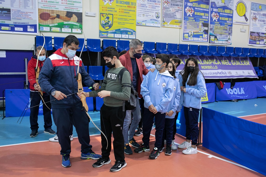 L’adrenalina è già a mille quando gli studenti provenienti da diversi punti cardinali dell’isola affrontano la passerella che li immetterà all’interno della palestra comunale di Norbello. Uno spazio immenso si staglia davanti ai loro occhi con distese di tavoli: da quelli tipici da ping-pong, a quelli apparecchiati con giochi di società e scacchiere. Al centro campeggiano quelli per il calcio balilla; più rannicchiate, attendono di essere prese d’assalto le postazioni adibite al tiro con l’arco e alla boccia. All’esterno trepidano altri scolari che prediligono farsi un giro in handbike immersi nel verde circostante.