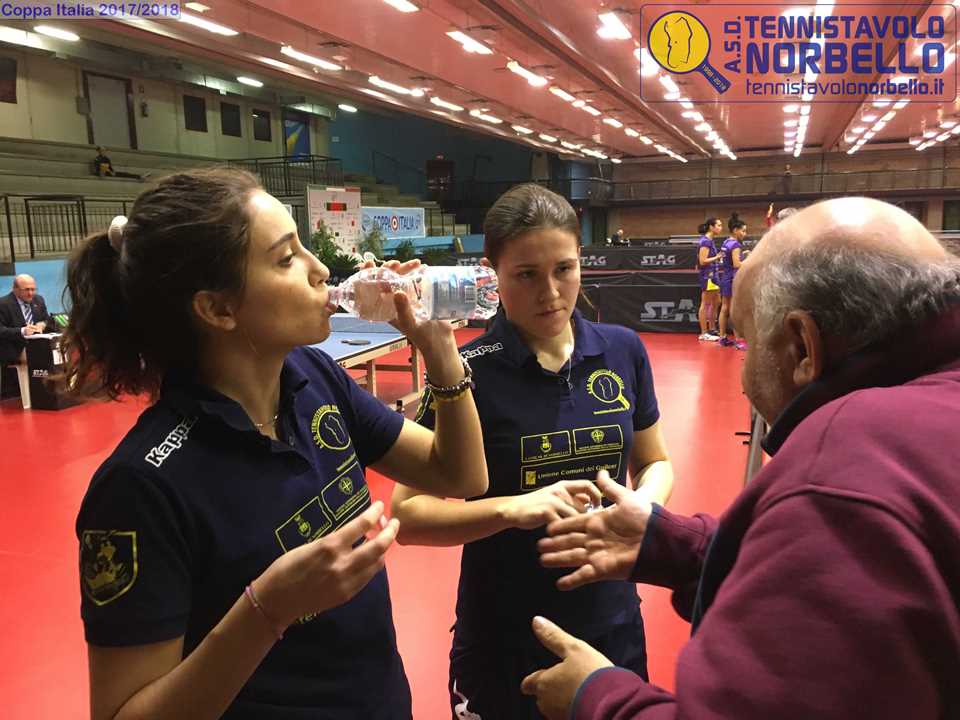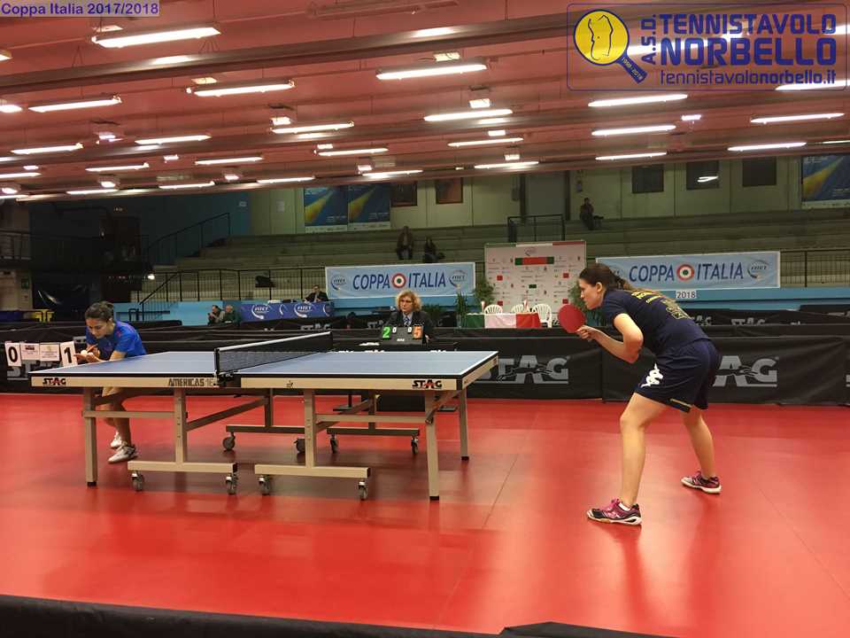 La certezza del podio è un motivo in più per il tecnico Eliseo Litterio nel pretendere qualcosa in più dalla squadra. Ma le ragazze hanno di fronte il Castel Goffredo, campione d’Italia in carica e futuro vincitore dell’edizione 2018 della Coppa Italia. Passano in vantaggio le norbellissime con Privalova che sgomina Le Thi Hong Loan. Styhar riesce a capire qualcosa della forte orientale Li Xiang (ancora imbattuta in campionato) solo nel terzo set, ma è troppo tardi. Vince per due volte ai vantaggi ma comunque 3-0 il duo Colantoni/Le Thi Hong su Fornasari/Styhar. La resa definitiva arriva con Privalova che si inchina per 3-0 alla cinese del Castel Goffredo.