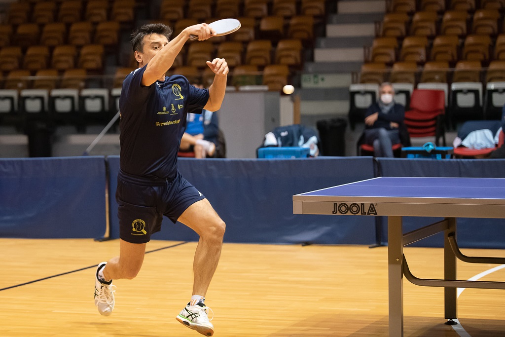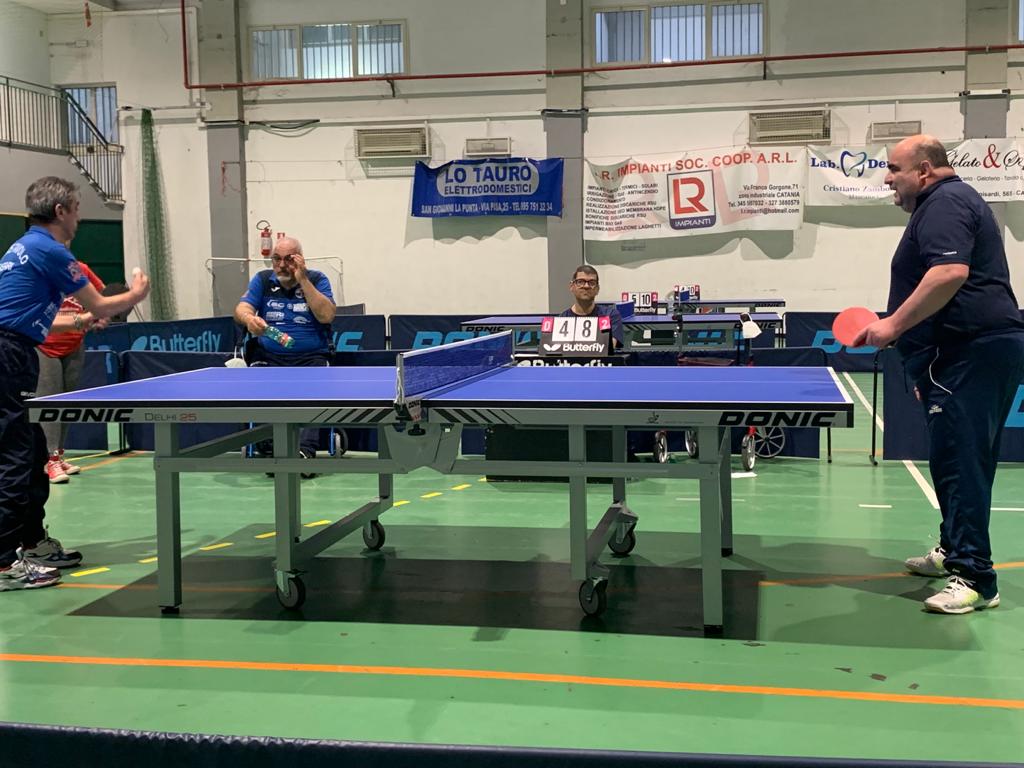 a dx Franco Sanna durante il derby con il Tennistavolo Sassari
