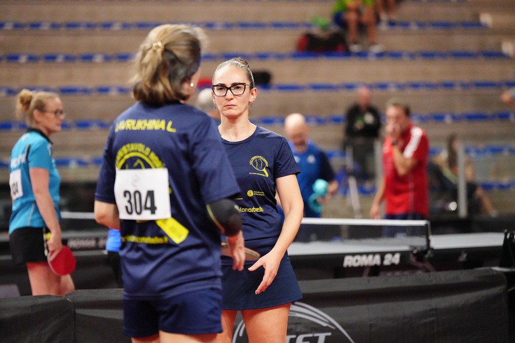Le due bravissime portacolori giallo blu si sono fatte valere nelle competizioni individuali relativamente alla categoria Master 40/50. In quel caso Larisa ha ottenuto un argento nel doppio misto con la collaborazione di Giovanni Maria Falcucci (Tennistavolo Firenze). Un bronzo tutto norbellese arriva nel doppio femminile.