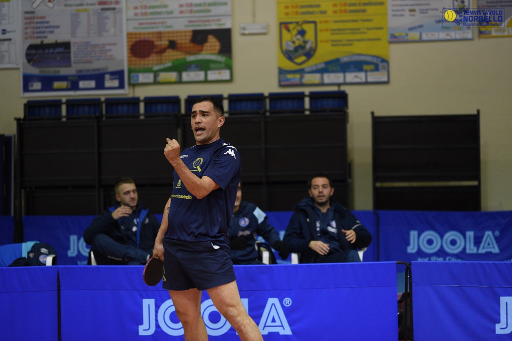 Parte molto bene Marco Antonio Cappuccio capace di imporre la sua superiorità nei confronti di Alessandro Baciocchi. Si assiste al graduale risveglio del pongista perugino che dopo il set della bandiera riesce a neutralizzare tre palle match e a rimandare il verdetto al quinto. L’equilibrio vige anche nel segmento conclusivo, dove entrambi collezionano chances di vittoria, ma il guizzo decisivo è del pongista di casa.