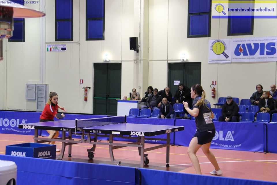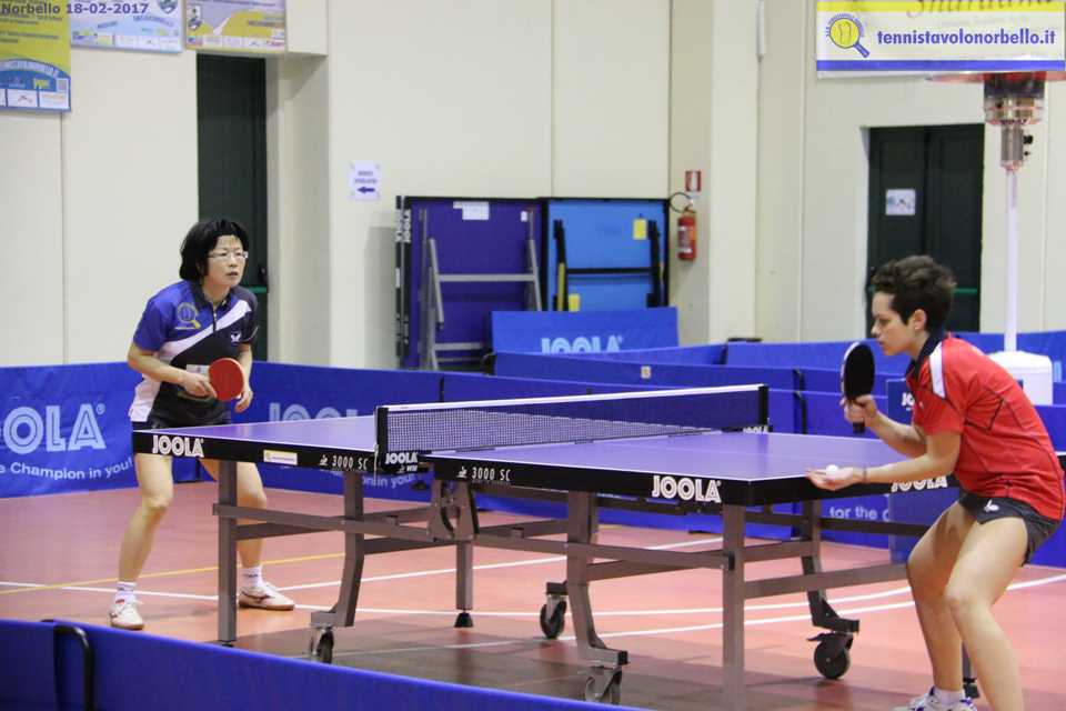 Il pomeriggio in via Azuni comincia nel migliore dei modi. Diana Styhar si è allenata con grande determinazione per tutta la settimana in terra norbellese e i risultati si vedono immediatamente, perché manda al tappeto niente meno che la n. 1 d’Italia Chiara Colantoni, fino a sabato appena due volte sconfitta in campionato. E lo fa con grande personalità, perché riesce a spuntarla ai vantaggi nel primo e nell’ultimo set. L’evento sorprendente rincuora la panchina locale e la veterana Wei Jian dichiara guerra ad una Giulia Cavalli che nelle ultime sfide ha sempre prevalso. Il copione non muta anche se la pongista magiostrina suda veramente freddo. La disputa si dilunga fino al quinto parziale. Quando si trovano otto pari, l’ospite trova il break decisivo che le consente di vincere di misura (11-9).