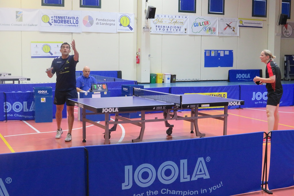 Una pura formalità utile per tenere in caldo i muscoli di braccia e gambe. La formazione austriaca non mette alcuna apprensione, al punto che sono sufficienti dodici set terminati in men che non si dica. La cordiale e volenterosa Sarah Kainz non è l’avversaria ideale per consentire all’argentino Gaston Alto di sciorinare le sue decantate qualità e Marco Antonio Cappuccio si accontenta dell’essenziale per liquidare Fredy Welte. Questa volta gioca anche l’allenatore russo Sergei Mokropolov che non disdegna di duettare con Wolfi Mayer. Nessun problema nel doppio conclusivo con Mayer/Welte in costante difficoltà nei confronti di Alto e Cappuccio.