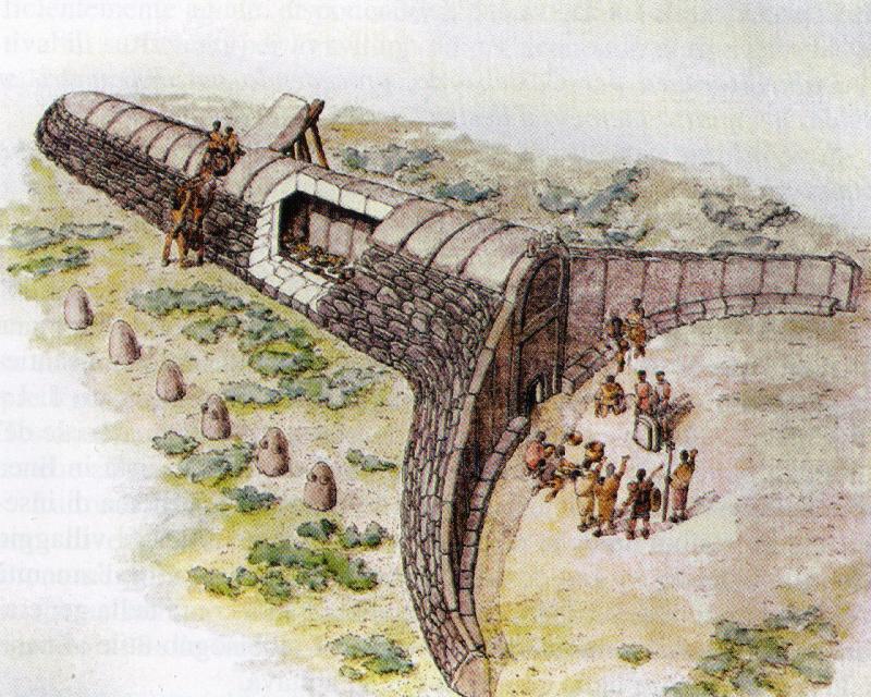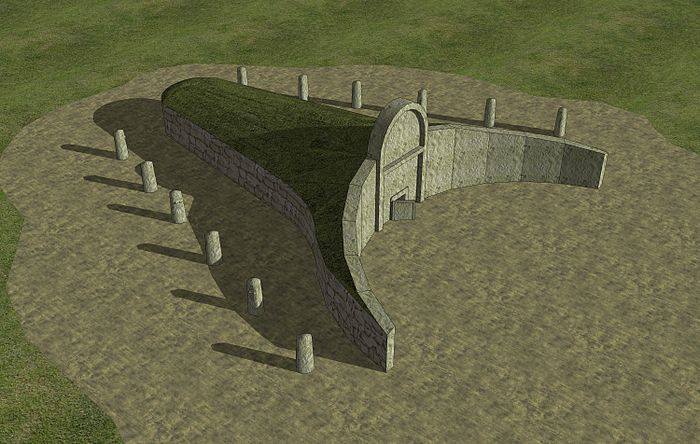 Questi particolari sepolcri consistono essenzialmente in una camera funeraria lunga sino a 30 metri e alta sino a 3 metri. In origine l'intera struttura veniva ricoperta da un tumulo somigliante più o meno ad una barca rovesciata. La parte frontale della struttura è delimitata da una sorta di semicerchio, quasi a simboleggiare le corna di un toro, e nelle tombe più antiche, al centro del semicerchio è posizionata una stele alta in alcuni casi fino a 4 metri, finemente scolpita e fornita di una piccola apertura alla base che – si suppone – veniva chiusa da un masso, e tramite la quale si accedeva alla tomba. In quella età pensavano che il toro e la madre natura si accoppiassero per poi dare vita ai defunti nell'aldilà. Nelle vicinanze dell'ingresso veniva eretto un betilo (o betile) a simboleggiare – si pensa – gli dei o gli antenati che vegliavano sui morti.